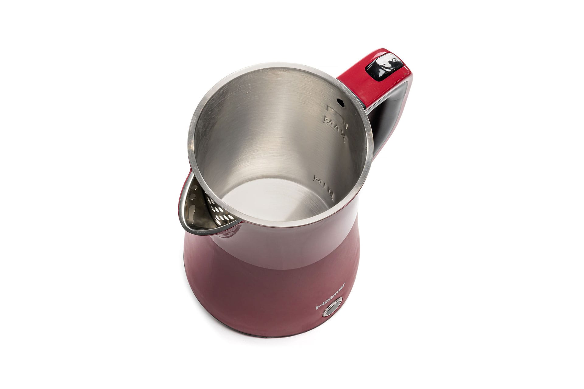 - Сталева внутрішня чаша стійка до корозії, міцна та не містить бісфенольних сполук, таких як BPА. Чайник легко мити зсередини.