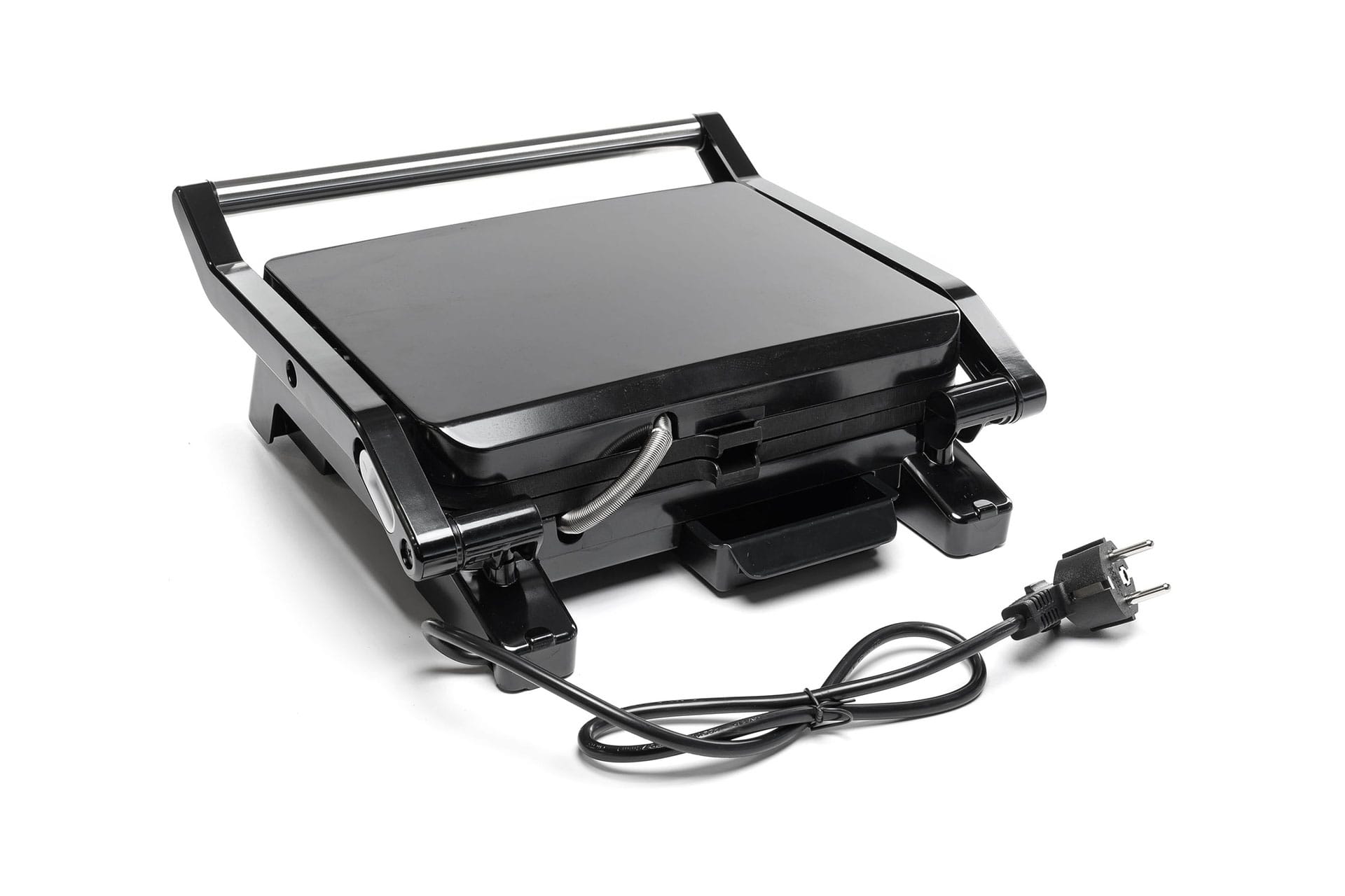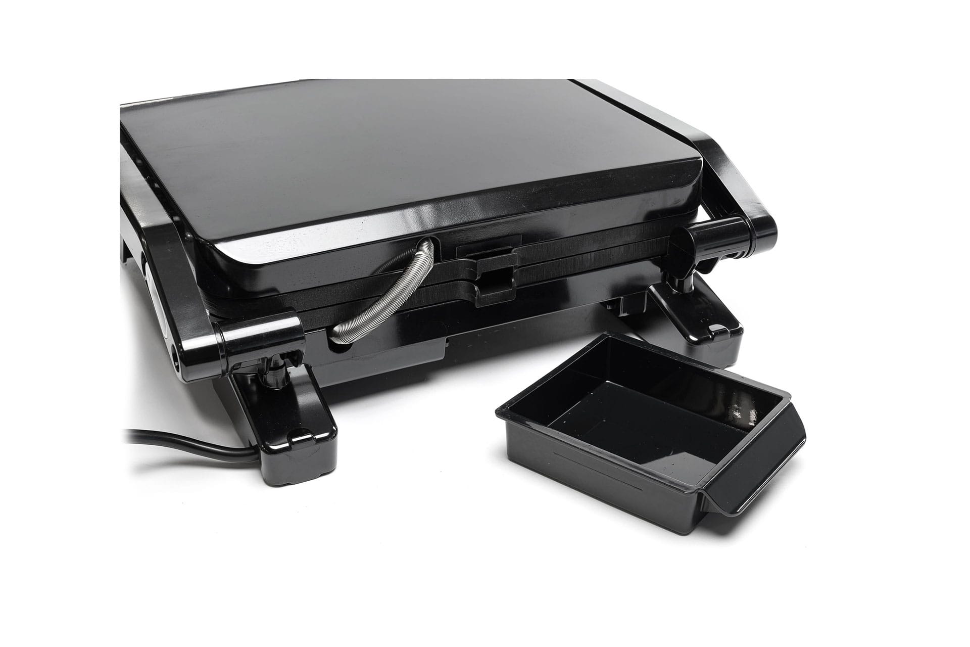 Кут відкриття конструкції можна налаштовувати на 105° або 180°, що дозволяє використовувати гриль як у закритому, так і у відкритому положенні. Знімний піддон для збору крапель жиру допомагає підтримувати чистоту на кухні.