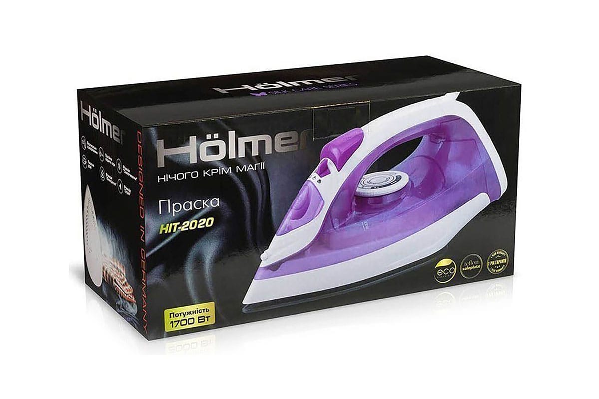 Праска Hölmer HIT-2020 для сухого прасування і з парою, має потужність 1700 Вт (час нагрівання max ~ 28 сек), паровий удар 100 г/хв, постійну подачу пари 30 г/хв. Тефлонове покриття підошви забезпечує легке ковзання по тканинах різних типів, розгладжуючи навіть найскладніші ділянки.