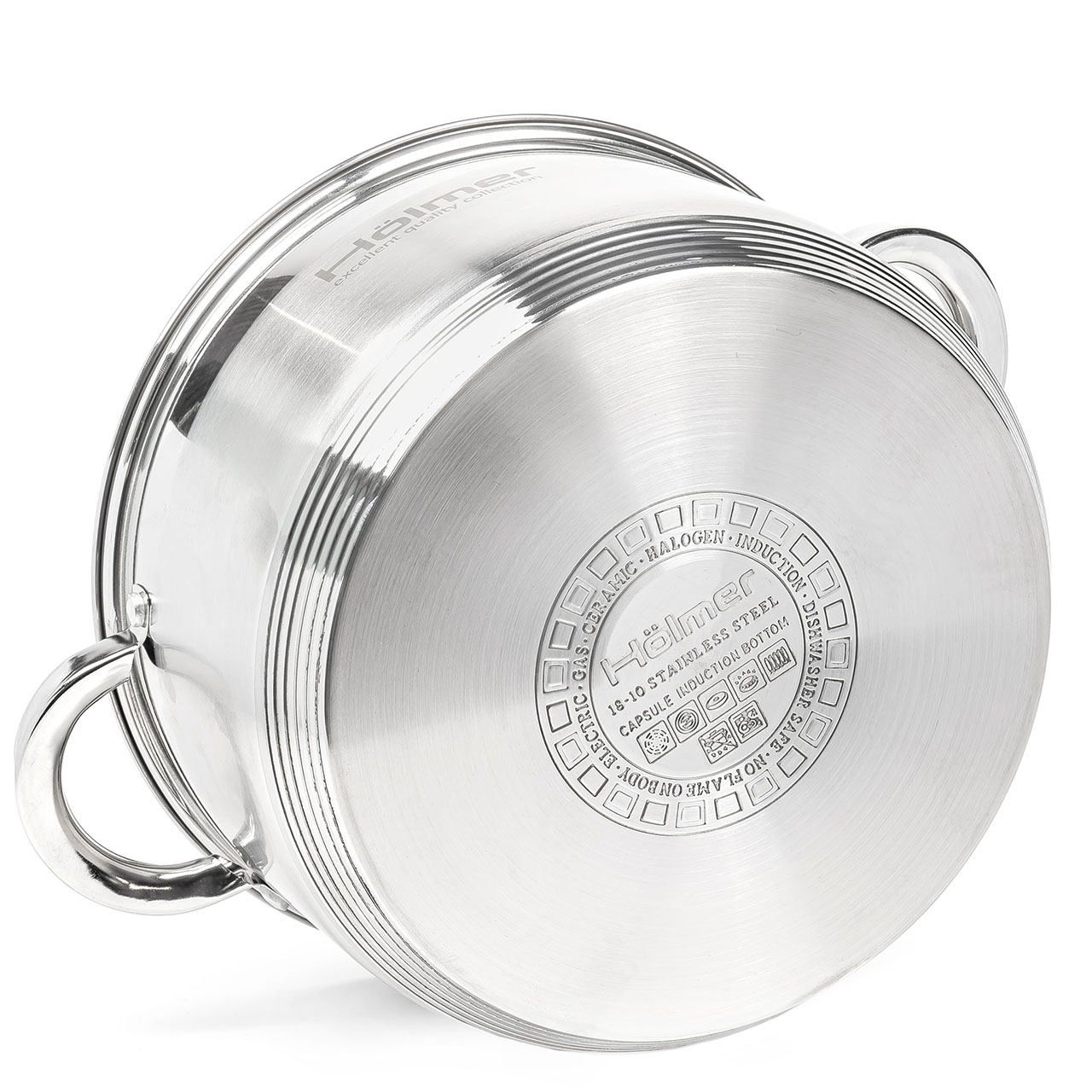 Hölmer CR-12562-SS — містка каструля з нержавіючої сталі, яка впорається з великими об’ємами їжі для всієї родини або гостей. Ідеальна для варіння бульйонів, супів, пасти, тушкування овочів або м’яса — будь-якої страви, яка потребує простору та рівномірного нагріву.