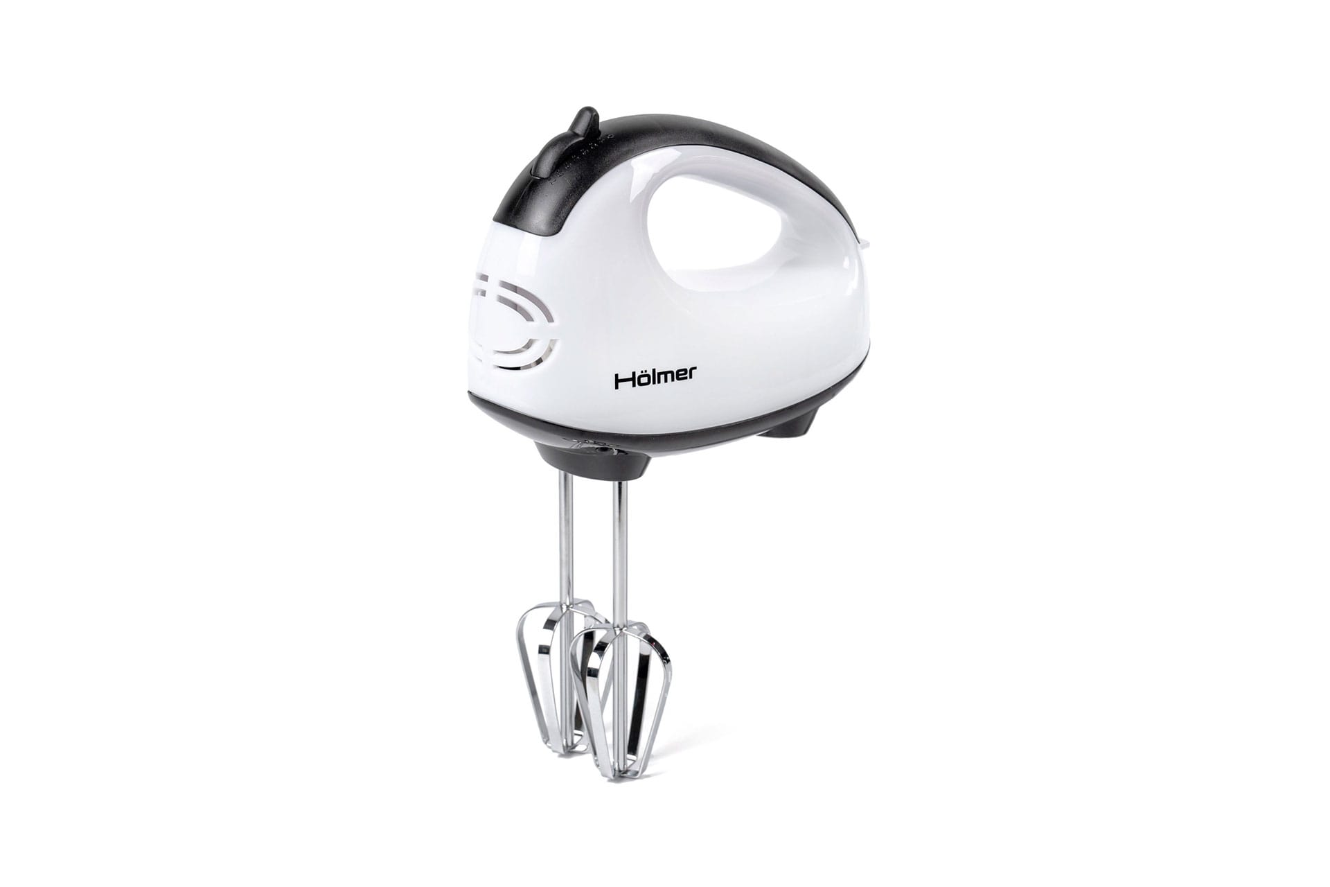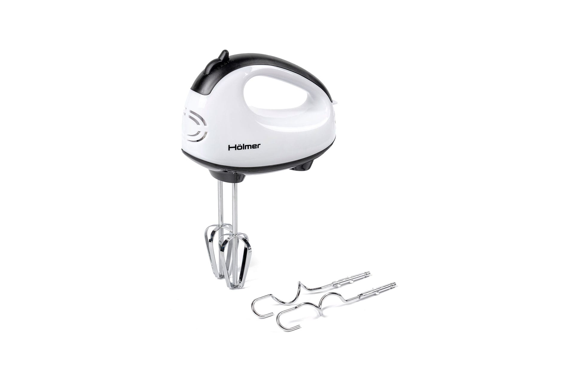 Сучасна модель Hölmer HHM-14 обтічної форми без гострих кутів представлена в класичному білому кольорі. Корпус виготовлений з якісного зносостійкого пластику, з хромованої сталі – потужні вінчики для збивання та гаки для тіста.