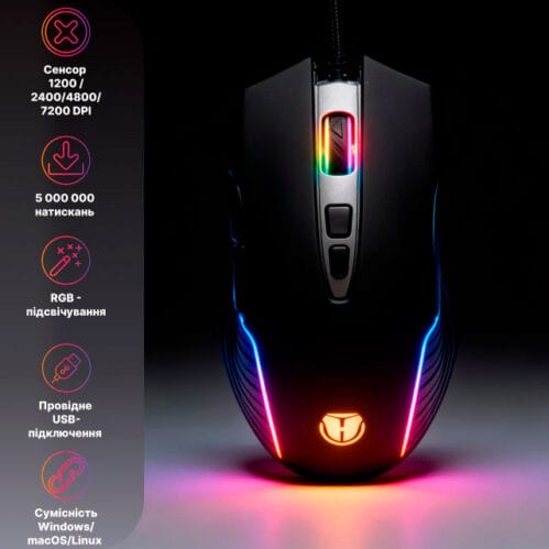 Завдяки потужному чіпсету A704F, миша підтримує 4 рівні чутливості, досягаючи піку в 7200 DPI. Ви можете миттєво перемикатися між режимами за допомогою двох спеціальних кнопок, адаптуючись до будь-якої ігрової ситуації, від динамічного бою до снайперського прицілювання.