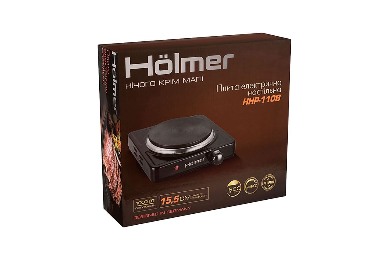 Holmer HHP-110B має спеціальний термостат, який захищає її від перегріву. Ця функція забезпечує безпеку користування і продовжує термін служби електричної плити.
