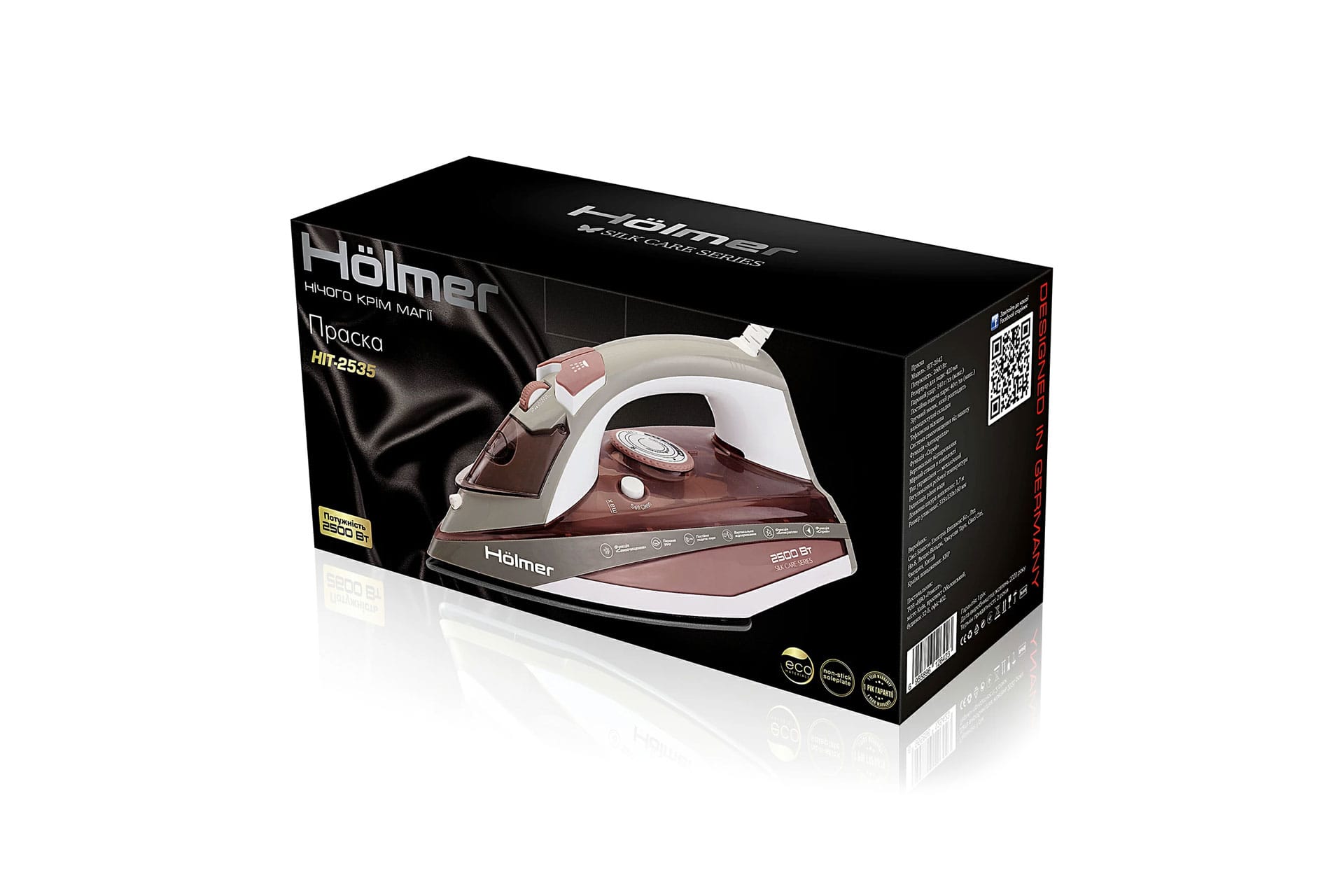 Праска Hölmer HIT-2535 для сухого прасування і з парою, має потужність 2500 Вт (час нагрівання max ~ 33 сек), паровий удар 130 г/хв, постійну подачу пара 30 г/хв. Тефлонове покриття підошви забезпечує легке ковзання по тканинах різних типів, розгладжуючи навіть найскладніші ділянки.